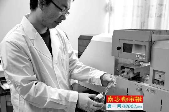 4 .程工正在使用原子吸收設(shè)備檢測水樣品。